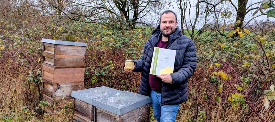 2012 war es, da sammelte Christian Gessner-Pröschs Verwandtschaft zu dessen Geburtstag Geld, damit er sich endlich einen neuen Laptop kaufen kann. Doch der Biologielehrer hatte anderes im Sinn: Er schaffte sich dafür Bienenvölker an und las sich kräftig in die Materie ein. „Ohne Kurs, alles autodidaktisch“ hat er alles gelernt, was man als Hobbyimker wissen muss.