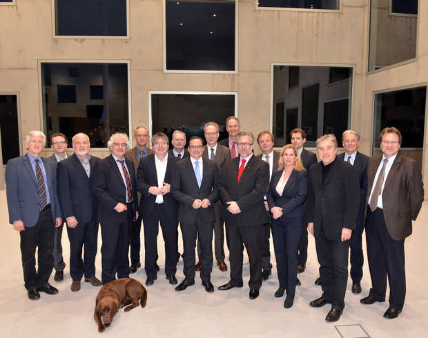 Unter Vorsitz von Oberbürgermeister Thomas Kufen (Mitte), und unter Beteiligung zahlreicher Entscheider aus Wissenschaft, Wirtschaft, Verwaltung und Stiftungswesen traf sich heute (08. 12. 2015) zum zweiten Mal der Lenkungskreis der Initiative „Wissenschaftsstadt Essen“. Foto: Peter Prengel, Stadt Essen