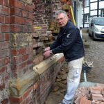 - Josef Bücker restauriert die Mauer zum Park der Ev. Kirche.